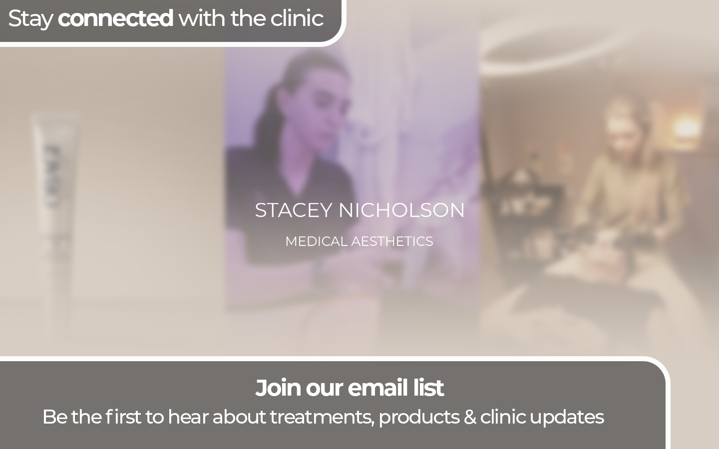 Be the first to hear about selected treatments, product highlights, and clinic-only offers.